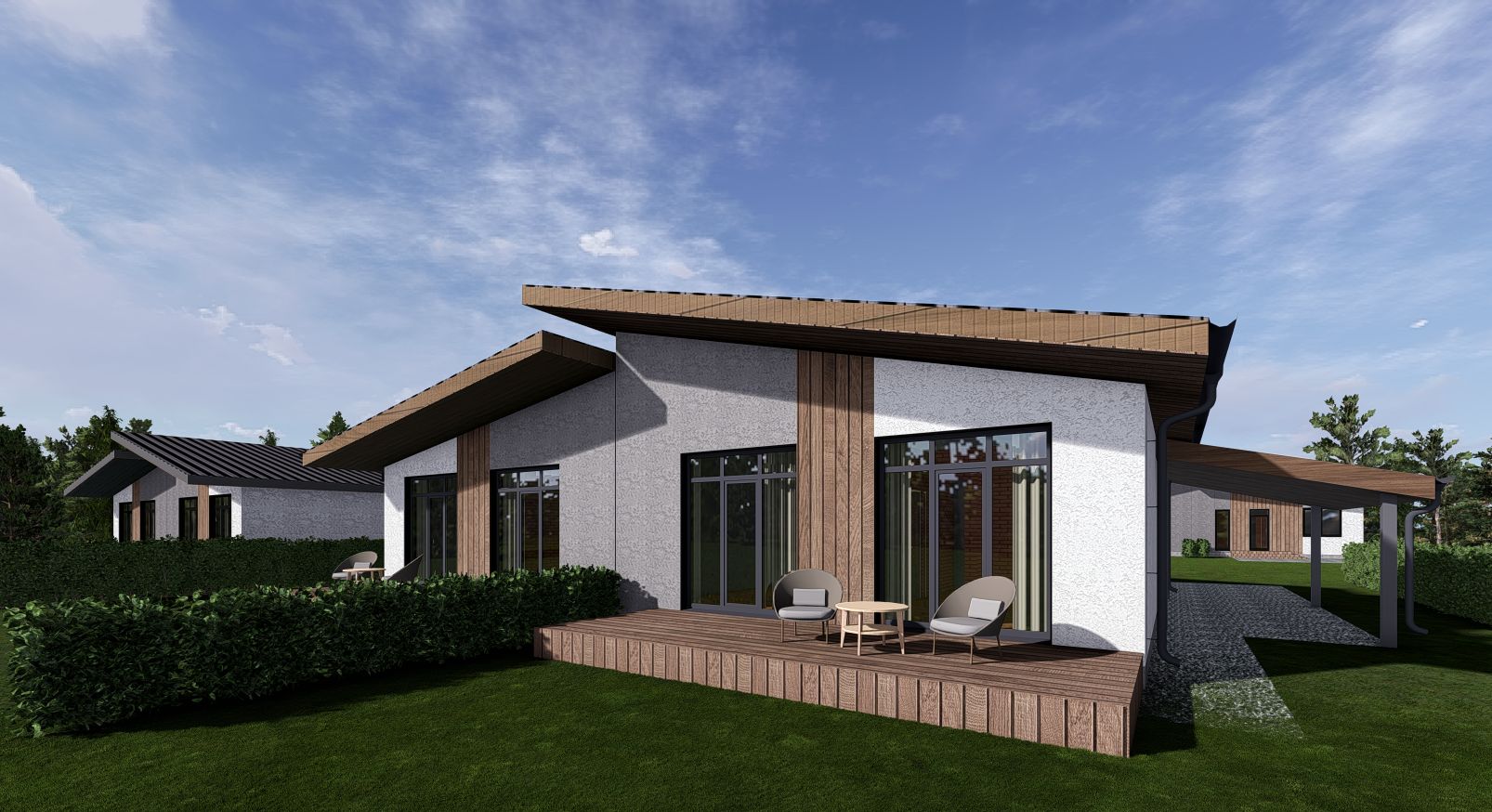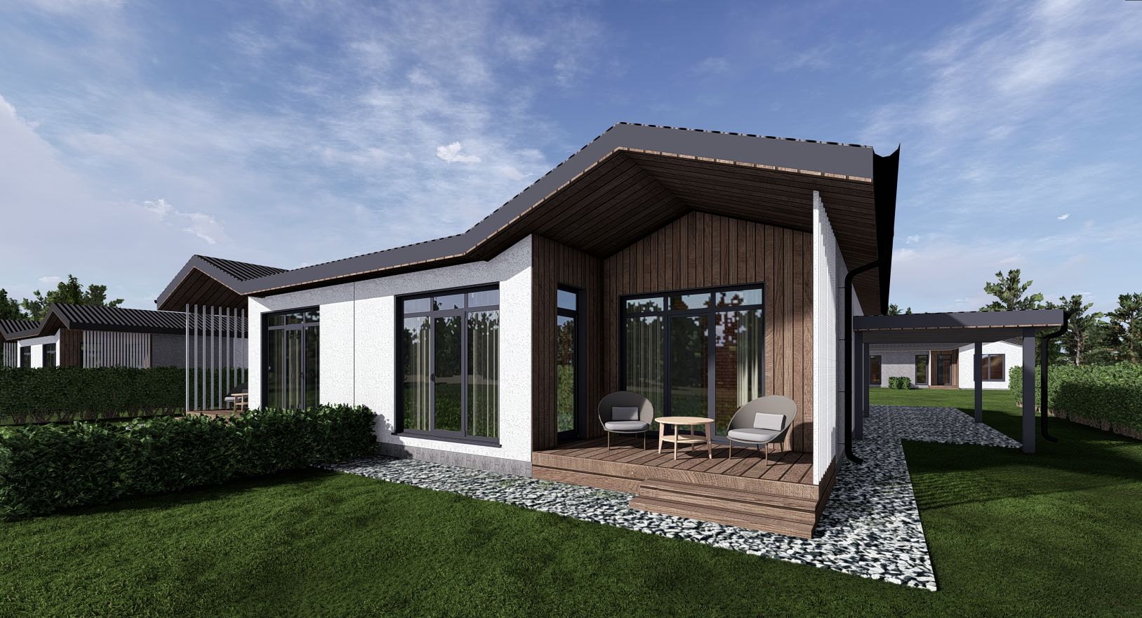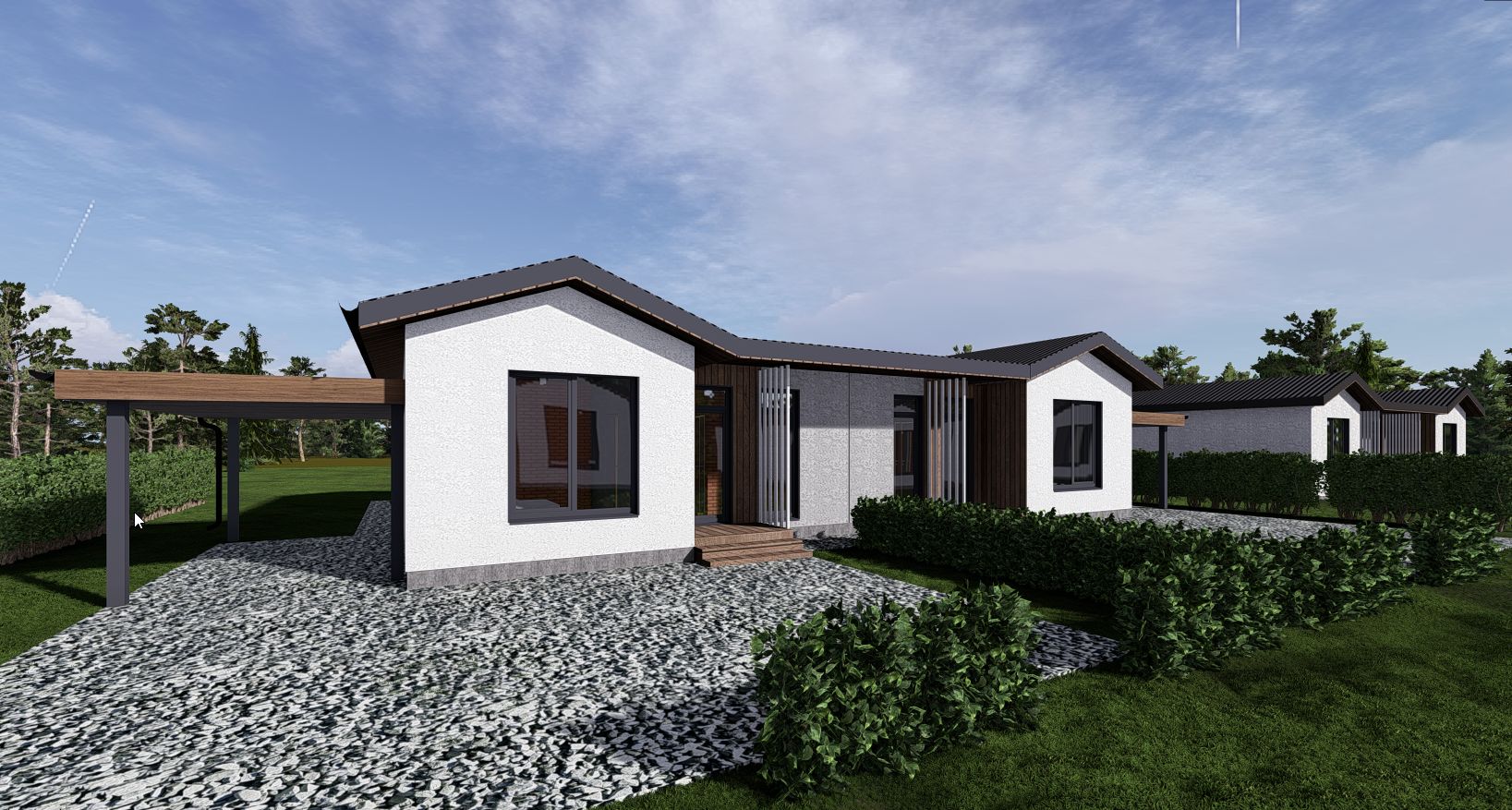 В проекте предусмотрены различные форматы домов, но все их объединяет единый архитектурный код, в том числе и ограждение участков. Дороги, освещение, озеленение, прогулочные маршруты - всё спроектировано по современным стандартам.